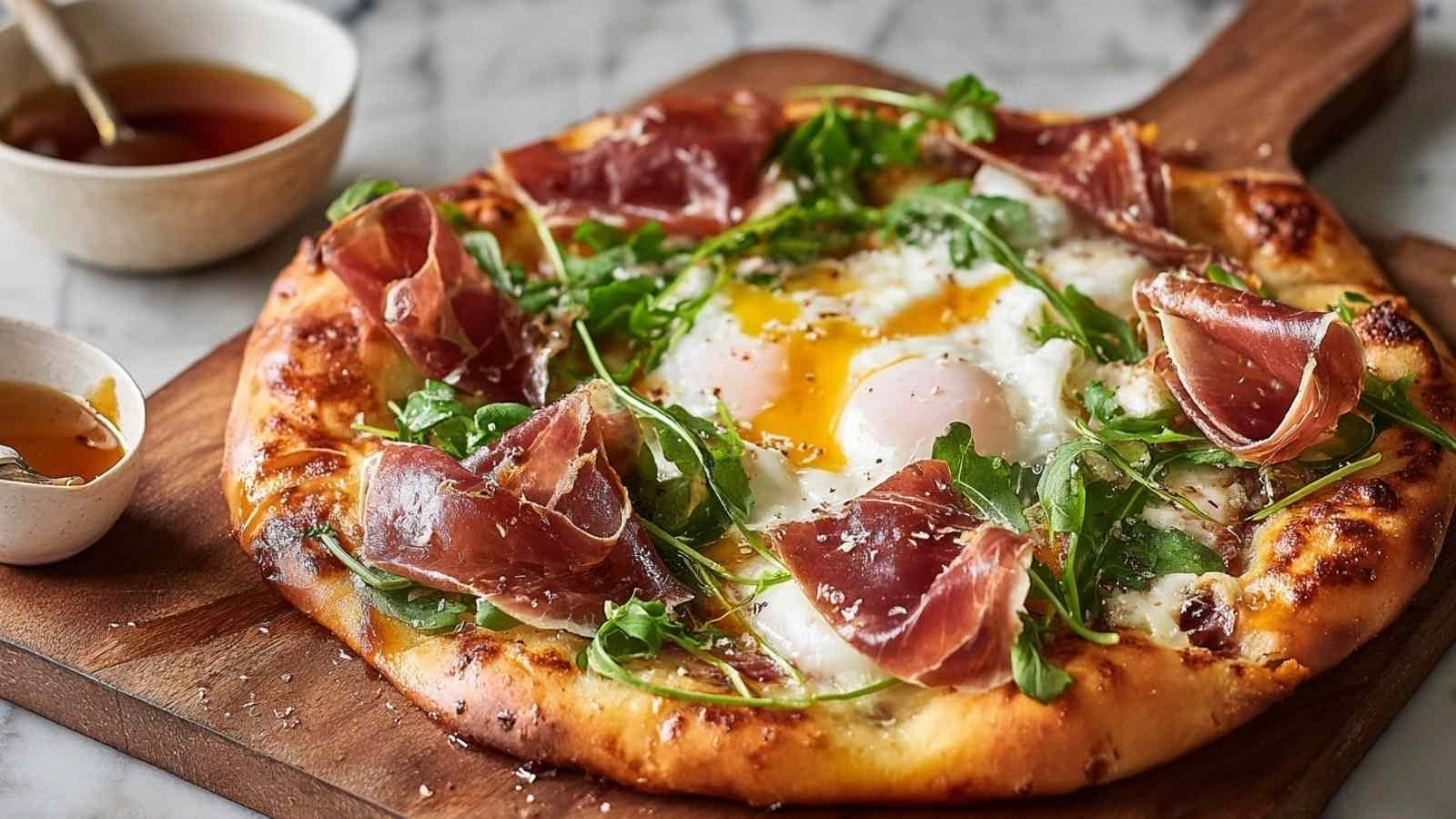 Top the pizza with a poached egg and a splash of hot sauce before serving. The runny yolk adds protein, and the sauce gives a zesty finish.
