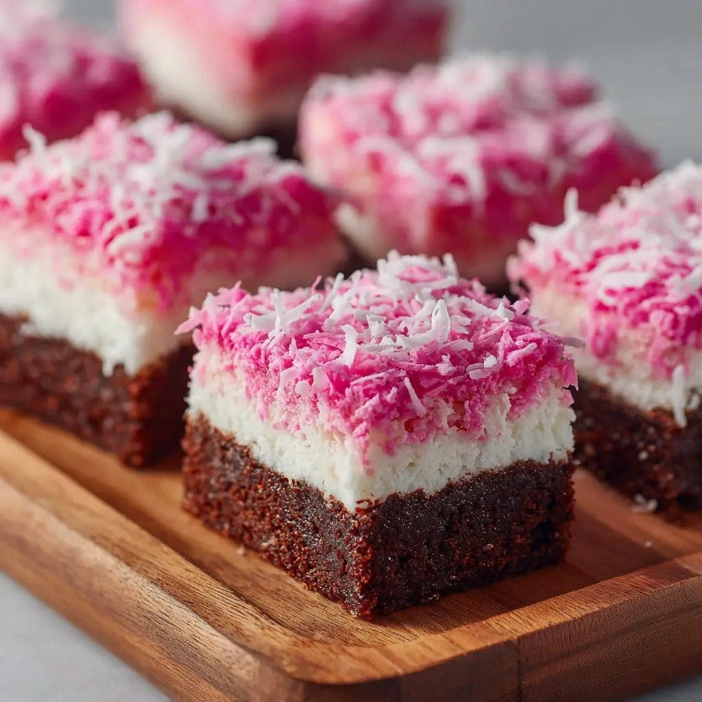 - Serve: Once set, cut the bars into bite‑size pieces if desired. They’re best served chilled or at room temperature. The pink hue and coconut crunch make them a show‑stopper at any gathering. I dare you to taste this and not go back for seconds.