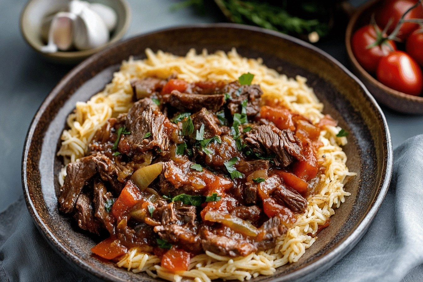 Most recipes get this completely wrong by over‑seasoning or under‑cooking the beef, but this version balances everything like a well‑orchestrated symphony. The slow cook brings out deep, savory notes, while the fresh herbs and feta add a bright counterpoint. The result is a dish that’s both comforting and sophisticated. Picture yourself pulling this out of the oven, the whole kitchen smelling incredible, and a bowl of steaming, saucy risoni waiting for you. The sauce coats the pasta like velvet, and the beef’s melt‑in‑your‑mouth texture feels like a warm hug. It’s the kind of dish that turns a regular dinner into a memorable family gathering.
